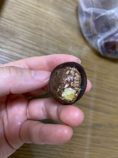 밤의 머리 뚜껑을 살짝 벗겨내고