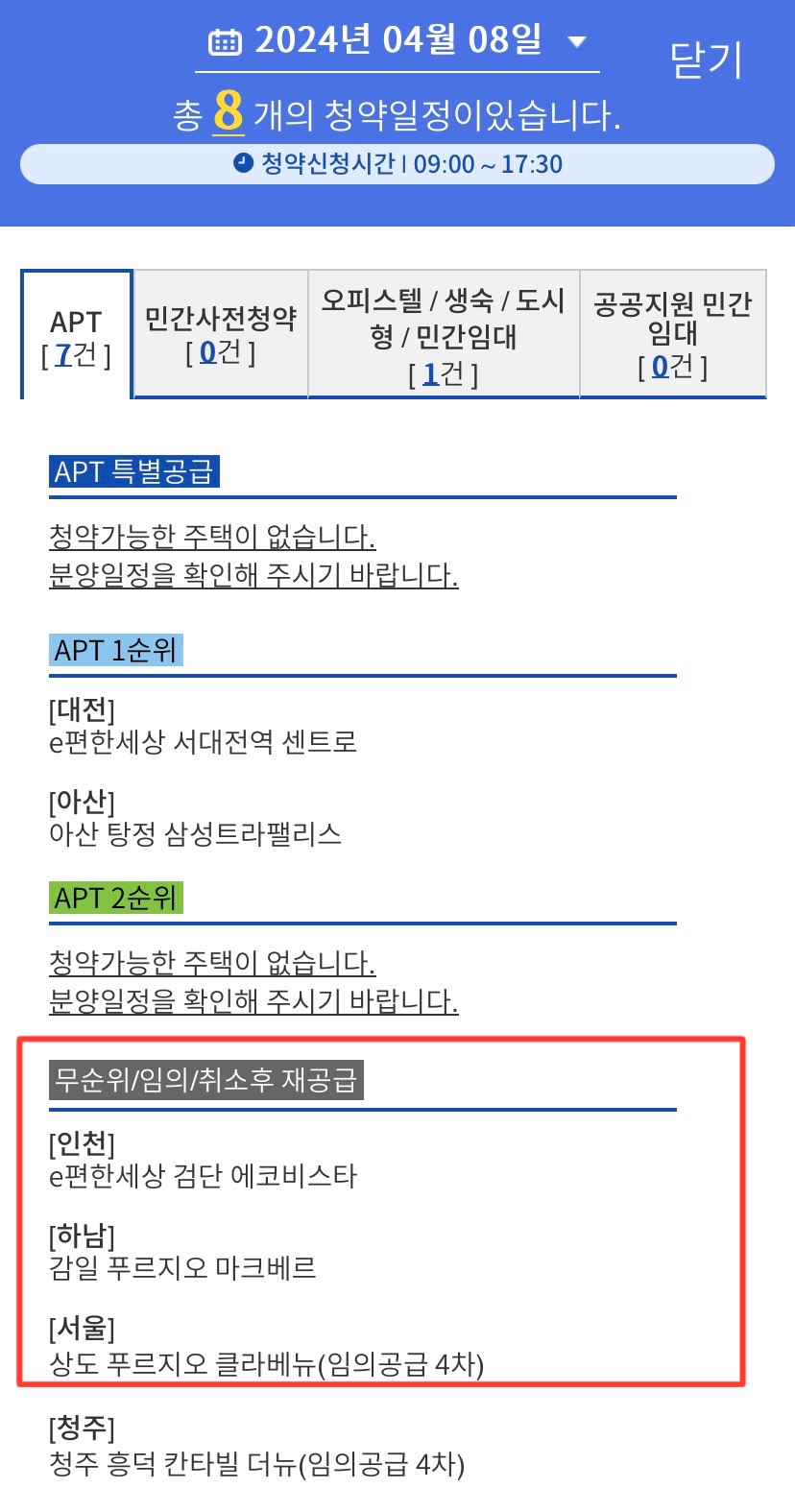 제가 노리는 무순위 / 임의 / 취소 후 재공급