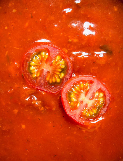 오로지 토마토만 이용해 소스를 만들기는 다소 어렵기 때문에 저는 시판 토마토소스에 실제 토마토를 추가하는 것으로 추천합니다. 일반 토마토소스를 반절만 사용하고 나머지는 진짜 토마토를 이용하기 때문에 보다 건강한 스파게티 소스를 만들 수 있습니다. 토마토를 끓여 껍질을 벗기고 잘게 잘라 끓이면서 주걱으로 으깨줍니다. 이때 베이컨이나 양파 등 추가 재료를 추가해 주시고 약한 불에서 오래 끓여 풍미를 살리고 진한 맛을 살려냅니다. 파스타 소스로 활용하거나 농도를 되게 하여 빵을 찍어먹어도 아주 맛있는 요리가 됩니다.